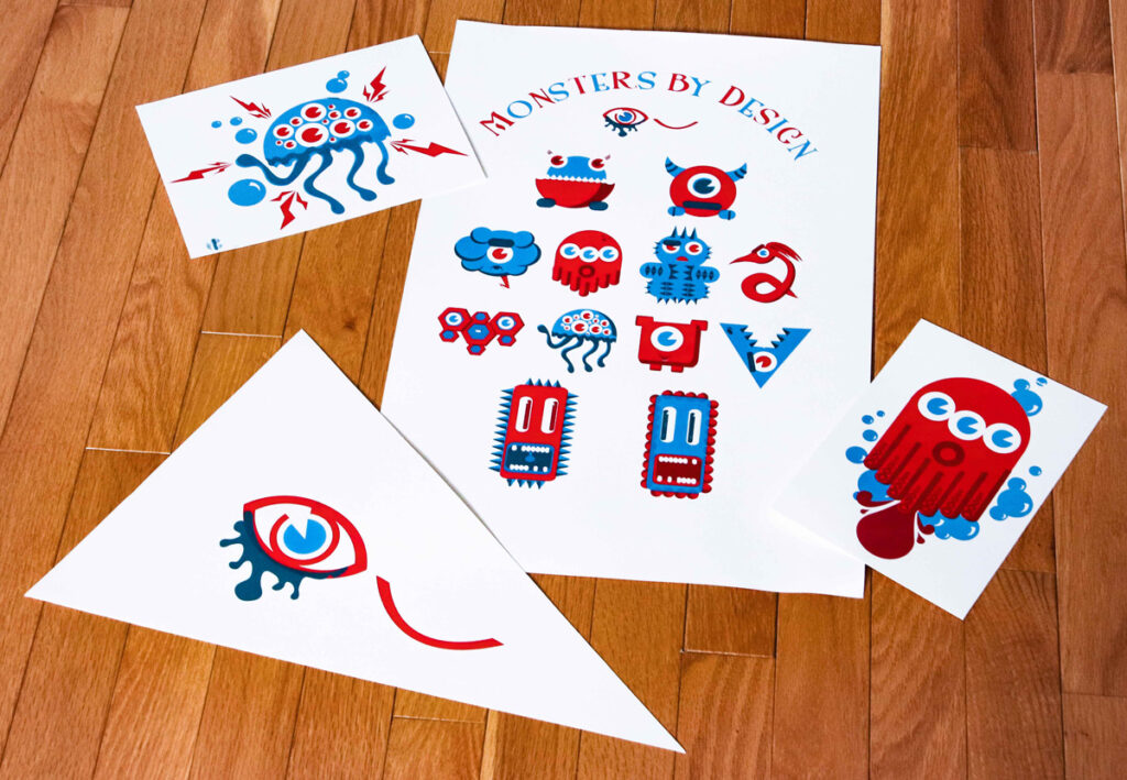 This is a project I worked on as part of a two-woman team. Our intent for this project was to immerse ourselves in creation. We decided to imagine a bunch of little monsters that work as a unified whole and then brand the little critters. We started by making a poster in a digital environment and then transferred it to paper via silkscreen. We took the project a step further by also silk-screening the little monsters onto t-shirts and stickers.