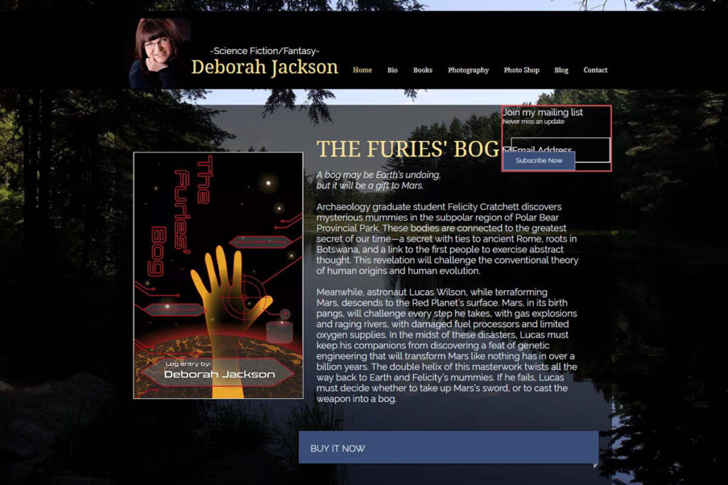 I stripped the homepage of most of its content and only displayed the logo on top of some stunning images related to what the author/photographer does. The nav would be displayed on the bottom of the logo image combo to ensure that the user can quickly navigate to whichever page they need to. The mini update section below the nav is meant to provide the user with quick access to the most up to date content on the site. I kept the mailing list section, but put it in the footer, so it could be consistent and displayed across all pages.