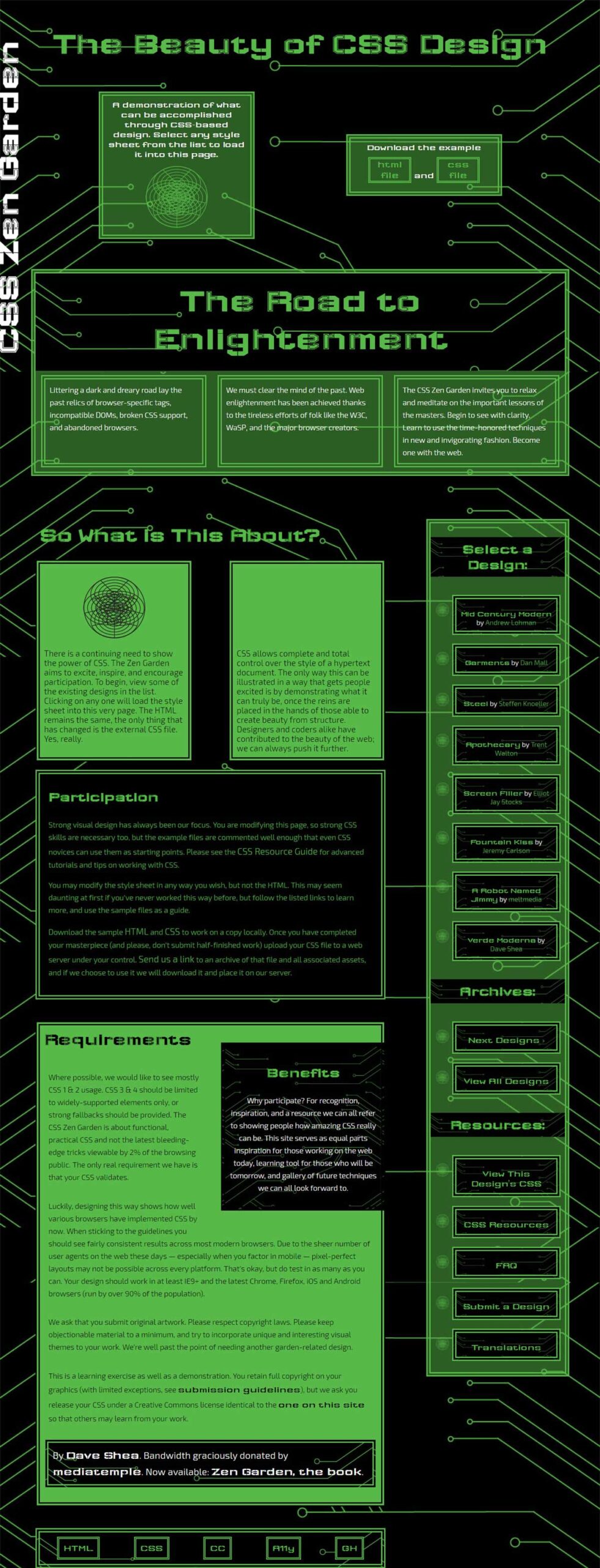 Like many web designers and developers before me, I created my own version of the zen garden site. The original can be found here. This was my introduction to intense CSS use.